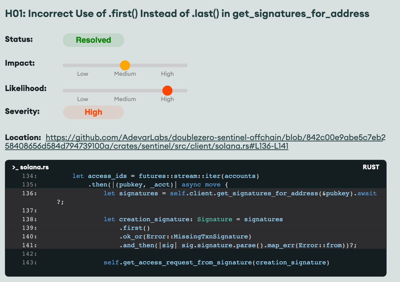 From a recent Solana audit — resolved