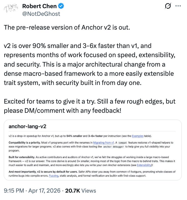 • Anchor’s ground-up rewrite — 94% smaller, compile-time safe